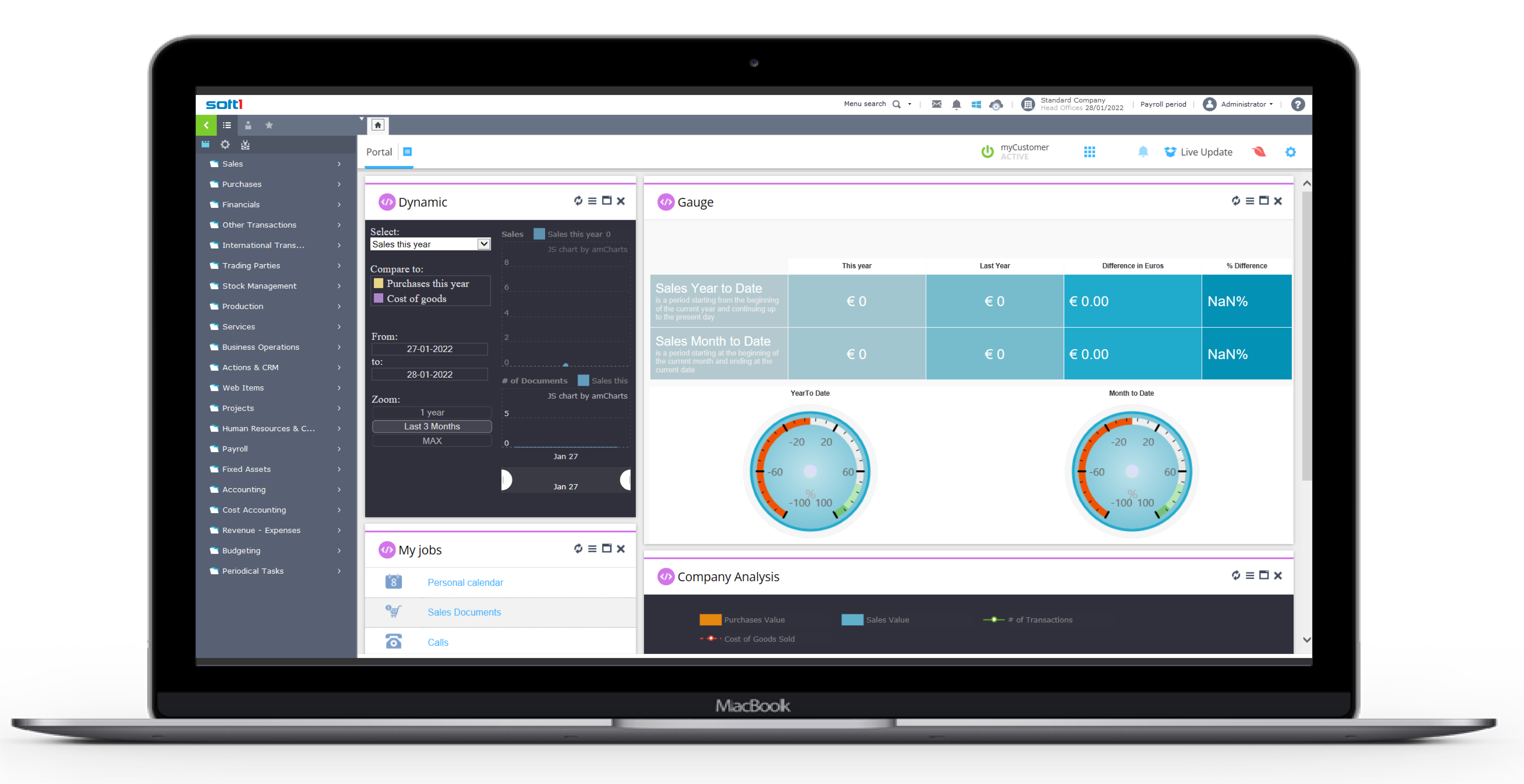 SoftOne’s ERP system is designed to allow users easily utilize its in-depth functionality. Accelerate and support all your core business processes -right from the start- with an easy-to-use, intuitive, role-based interface. Being fully configurable and extensible, Soft1 ERP Series 5 completely adjusts to your business needs, ensuring instant response to new market challenges.